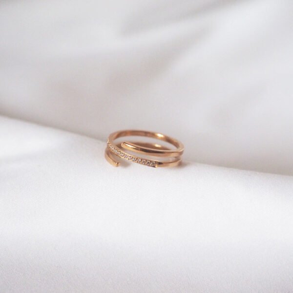 Make a statement with our eye-catching Fontanne Cubic Zirconia Ring. This wrap-around ring features a sleek and modern setting with sparkling cubic zirconia accent stones. crafted in gold-plated Stainless Steel.??Wear this ring alone or stack it with other rings for an eclectic look.?