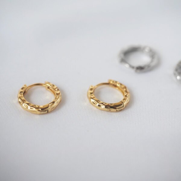 Make an elegant impression with these Hammered Huggie Hoop Earrings. Ultra versatile. you will get lots of mileage from this pair for both your day?or night ensembles. Pop them on with your hair pulled back and with an off-shoulder top for maximum style impact. Available in gold and silver tones.