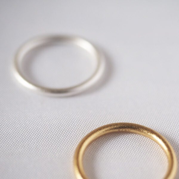 These skinny gold bands make the perfect stackable ring! They come in?gold and silver and look amazing with mixed metal or matching metal colors. Our?In??s Matt Ring makes a great spacer for engagement rings that are set low as well. So many options with this one simple skinny band!?