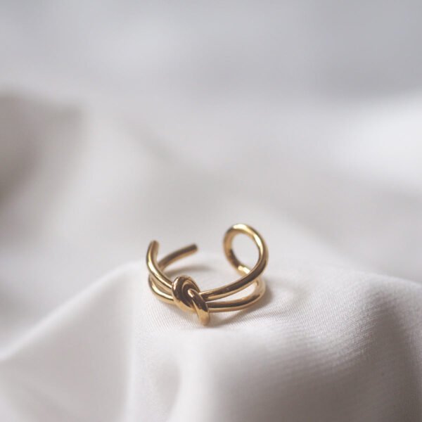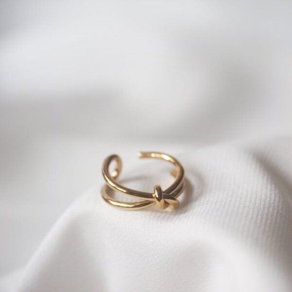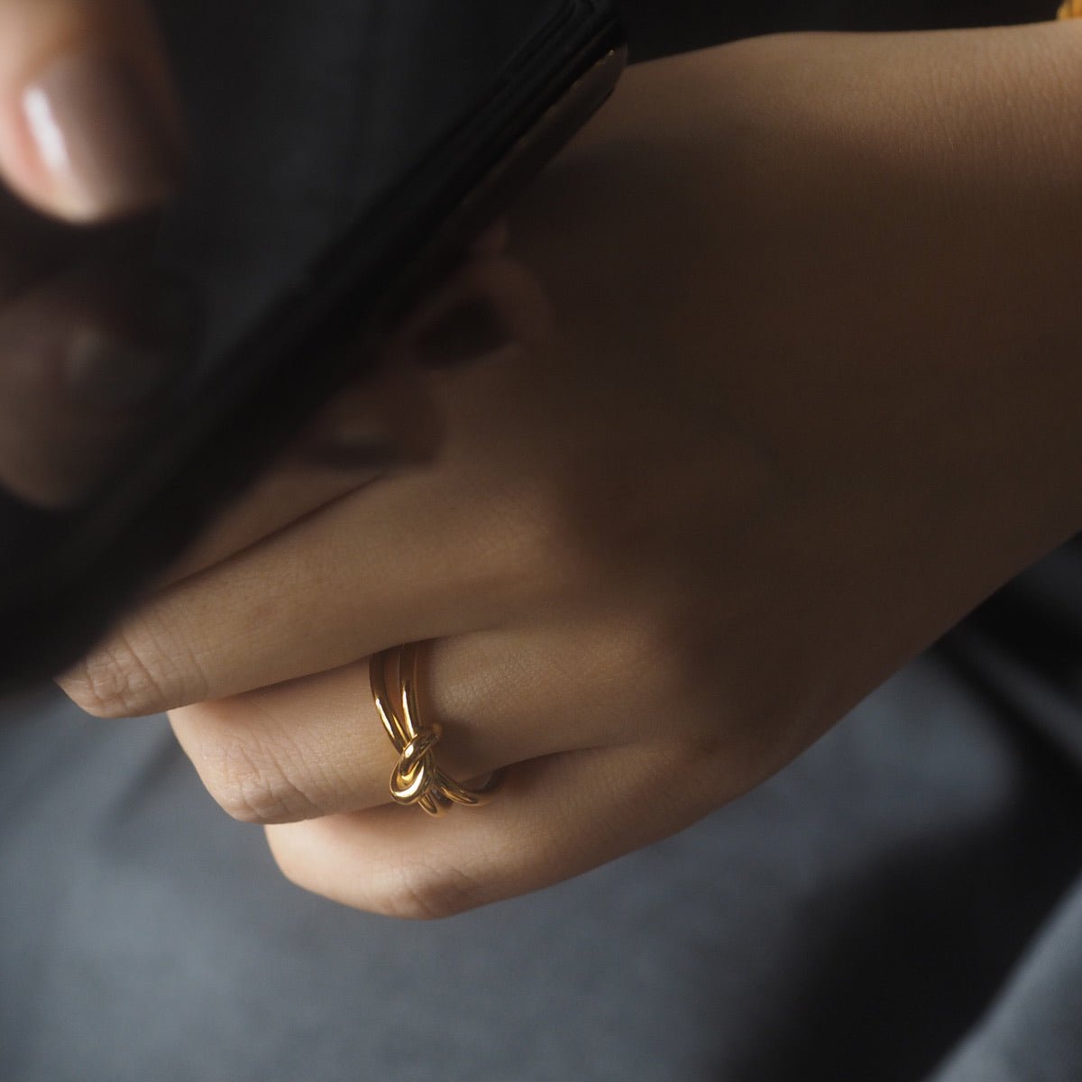 The Knot Ring is crafted in gold-plated Stainless Steel designed features with a?knot design. The simple knot on this open-ended ring represents never-ending love. perfect as a gift for someone special.?This?ring?has an?open end?which always allows for a snug fit.?